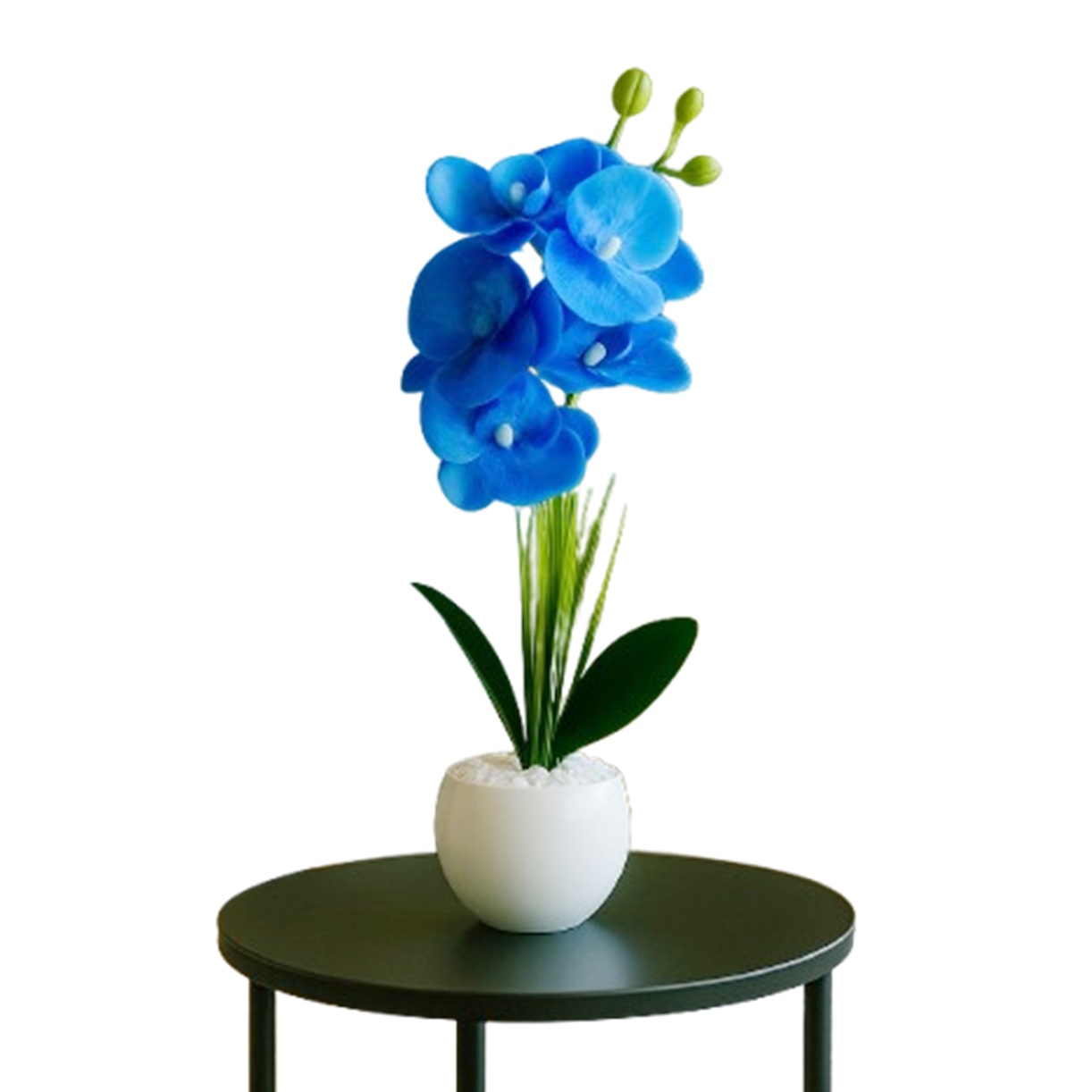 1 Arranjo Orquídea Azul Com Vaso Com Pedrinhas Naturais Completo Montado Pronto